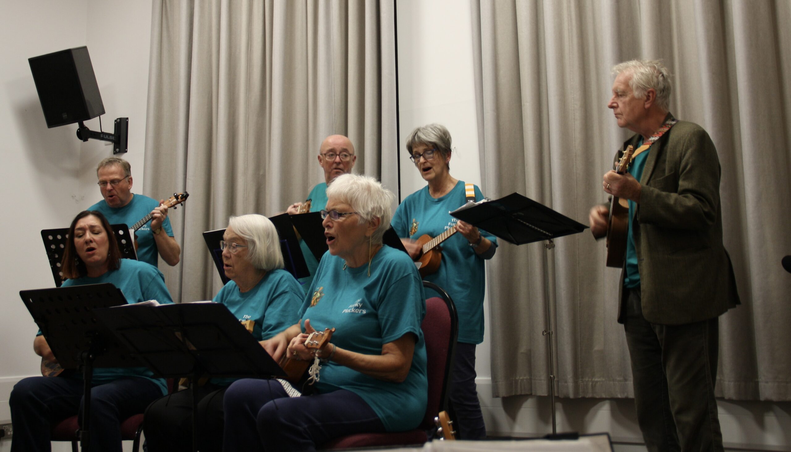 The Eisteddfod Concert in October 2025 had a Full choir and Ukulele sing along. With a lovely spread of food from The Wellbeing Hub, and a well stocked bar, this Eisteddfod fundraiser raised over £1,100. This was a very enjoyable event and a massive thanks to Rhys the compere, Decibelles ladies choir, RocCana backing band and the “Funky Pluckers” Ukulele group.